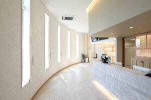 当院の出入り口や院内は、車椅子やベビーカーに乗ったままで移動できるように、患者さんの導線や利便性を考えたバリアフリー設計となっております。また、院内のデザインは「患者さんに居心地の良さ」を感じてもらうために地元栃木県の伝統工芸を随所に使用したこだわりの空間です。